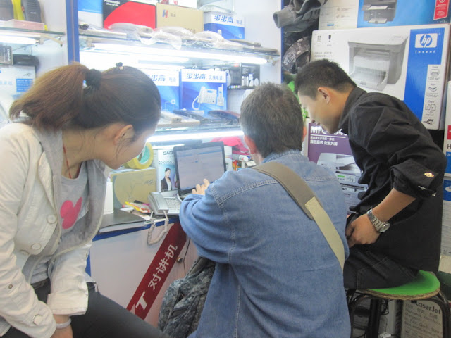Après notre rude mais époustouflante randonnée d’hier sur la muraille de Chine, nous décidons aujourd’hui de faire du shopping dans le temple de l’électronique, à la station de métro « Zhongguancun ».