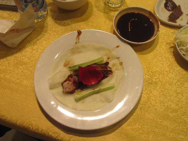Le canard est découpé devant nous en fines lamelles, croustillant à l’extérieur et moelleux à l’intérieur.